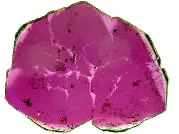 Another more uniformly coloured "Watermelon" tourmaline crystal slice from an unknown location: